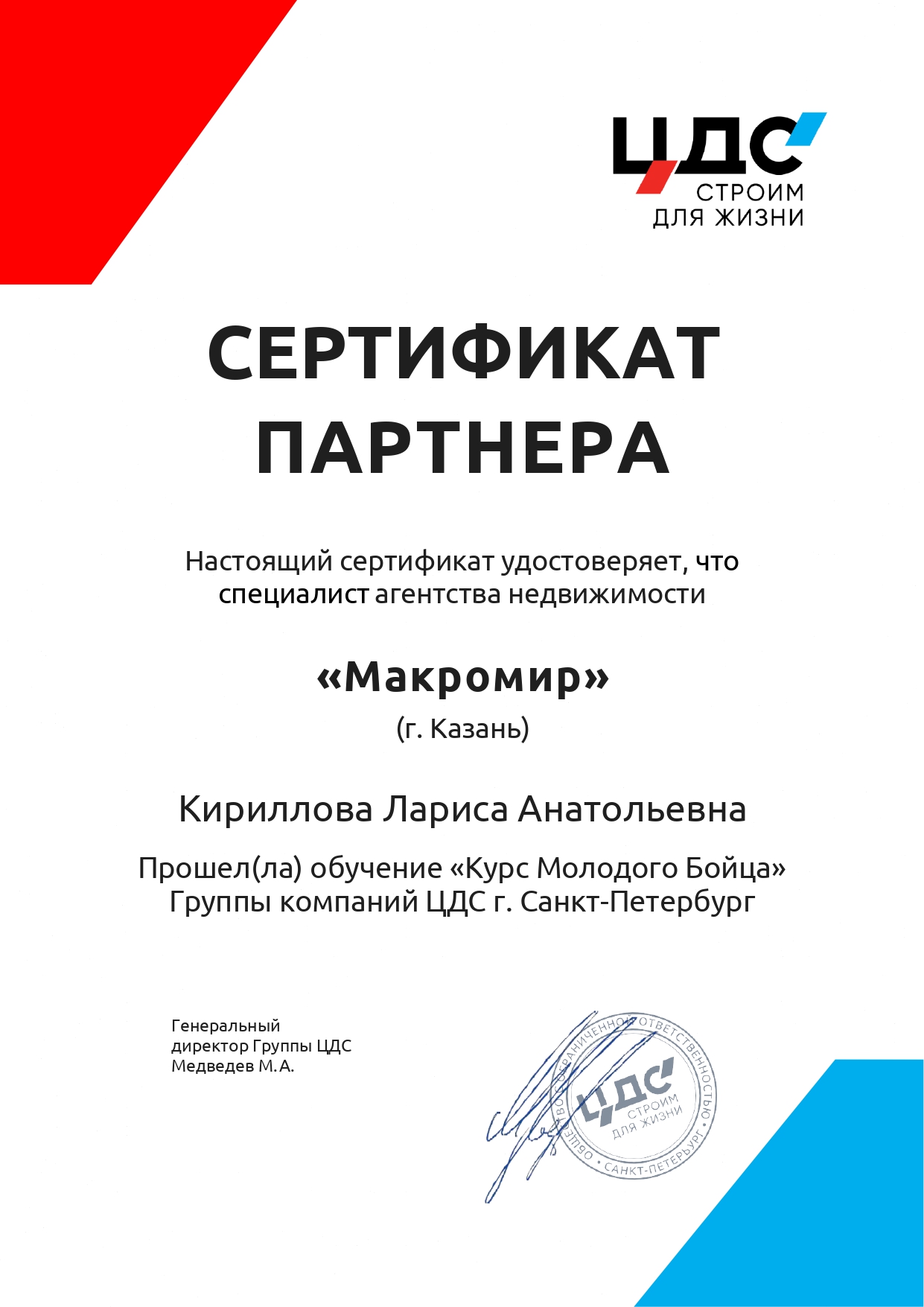 Благодарю Кириллову Ларису за оперативную помощь в подборе квартиры. Рассматривали и просчитывали разные варианты, и подобрали лучший для нас вариант. Лариса спокойно отвечала на все вопросы, была всегда на связи, присутствовала на сделке. Рекомендую как специалиста, обращайтесь.